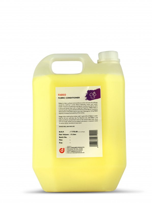 Fabso is a fabric softener and conditioner which removes the stiffness caused by washing in some fabrics especially cotton and Turkish towels. It acts as a conditioner to all fabrics. It softens the fabrics, gives it shine and leaves them with a lingering Fragrance. Fabso helps in maintaining the original softness and texture of the fabrics. It prevents deterioration of the fabric due to over use of detergents. Using Fabso regularly increases the durability of the clothes.