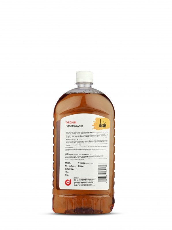 Orchid is a surfactant based floor cleaner. Orchid is neutral and safe for all types of flooring viz. ceramic, mosaic, shahabad, marble, granite, and all natural stones. It is specially formulated for cutting oil, grease and general soil from the floor, leaving it clean and with a fresh lingering fragrance. Orchid is especially effective in hard water conditions. Orchid is not only an effective cleaner which is optimal for daily use but also an excellent deodorizer that will eleminate pungent odour. The pleasant fragrance of Orchid will fill up your home which will rejuvenate your senses and make your HOME-MAKING experience even more splendid. Orchid range of cleaner is ideal for use in home, hotels, hospitals, offices and other premises as well. Orchid is available in 5 scintillating fragrances: Verdant-Oasis, Citra-Dip, Floral Fantasy, Sandal Delight & Lemongrass