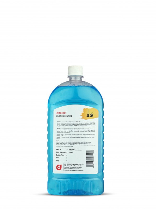 Orchid is a surfactant based floor cleaner. Orchid is neutral and safe for all types of flooring viz. ceramic, mosaic, shahabad, marble, granite, and all natural stones. It is specially formulated for cutting oil, grease and general soil from the floor, leaving it clean and with a fresh lingering fragrance. Orchid is especially effective in hard water conditions. Orchid is not only an effective cleaner which is optimal for daily use but also an excellent deodorizer that will eleminate pungent odour. The pleasant fragrance of Orchid will fill up your home which will rejuvenate your senses and make your HOME-MAKING experience even more splendid. Orchid range of cleaner is ideal for use in home, hotels, hospitals, offices and other premises as well. Orchid is available in 5 scintillating fragrances: Verdant-Oasis, Citra-Dip, Floral Fantasy, Sandal Delight & Lemongrass