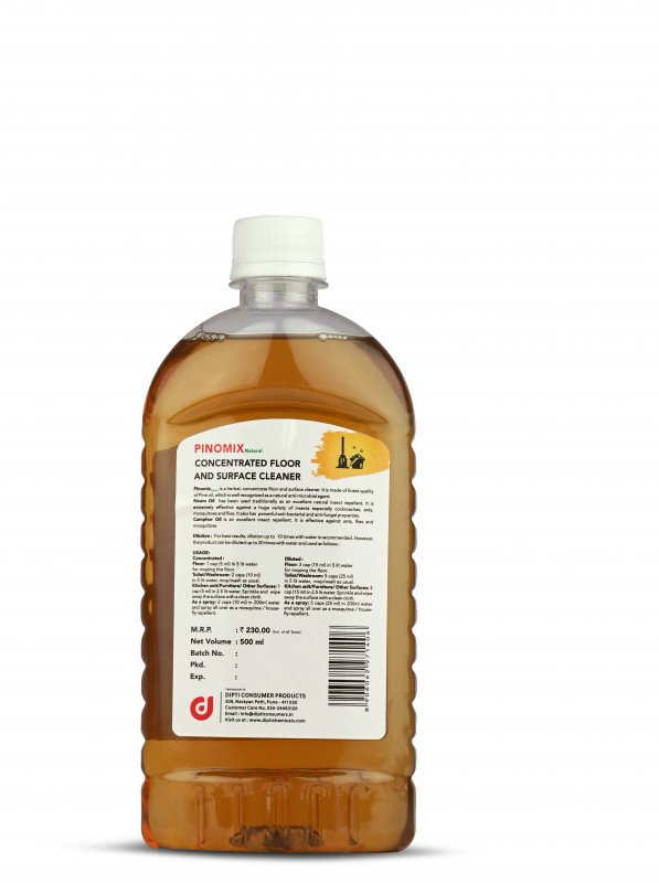Pinomix is a Herbal, Concentrate floor & Surface Cleaner. It is made of finest quality pine of Pine and natural Camphor oil which is well recognized as a natural anti-microbial agent. Pinomix comes loaded with neem oil and terpineol, both of with are natural anti-maicrobial agents.
