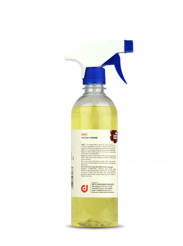 Q Rec is useful for cleaning kitchen unit. it is designed to cut the oiliness prevalent on kitchen Top, Gas stove, Kitchen furniture, kitchen unit, window panes and surrounding areas.  Q rec Kitchen cleaner is non-acidic, non-toxic and safe for use around cooking area. Safe on all surfaces.